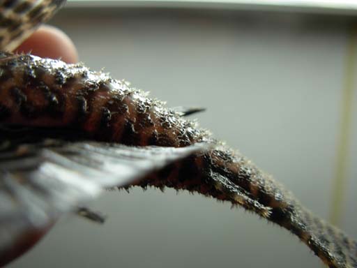 - 雄の尾筒周辺には多くのトゲに覆われています