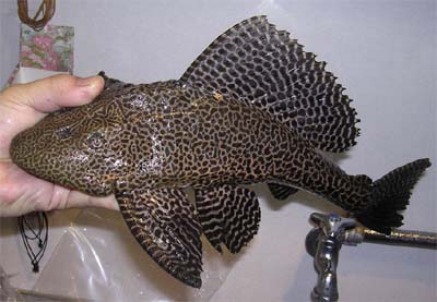 東南アジアでの養殖が盛んで安価であるため、世界で最も普及しているプレコです。 意外に大きくなる種で、50cmほどになると思われます。