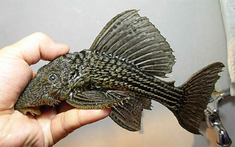 ドラゴンハイフィンレオパードトリム、メガロハイフィンレオパードトリムと共に3大メガランと呼ばれているプレコです。 サンフランシスコ河に生息する、60cmオーバーになるといわれる大型種です。