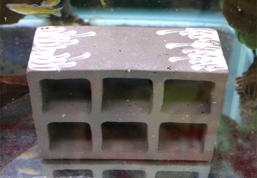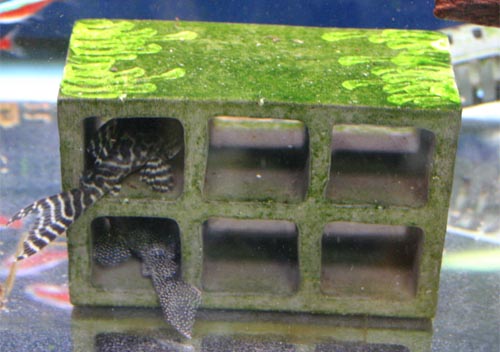 以下の例では、プレコ用素焼きシェルターのプレコマンションを漂白剤で綺麗にしています。